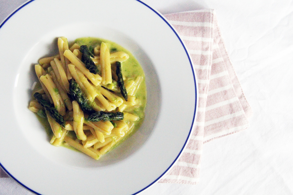 little salted. In the meantime, cook the asparagus tips in a pan with a little