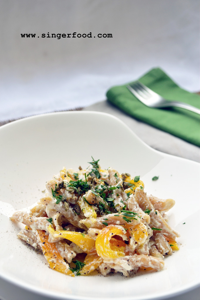 Partiamo da una considerazione molto personale: "gusto e benessere" vanno ricercati nell'essenziale, nella semplicità di materie prime di ottima qualità con l'aggiunta di poco altro. La ricetta che abbiamo pensato di proporre con le Penne Integrali è la sintesi di tutto questo: peperoni, ricotta e capperi. Un primo vegetariano che ha i colori dell'estate, il sapore della genuinità e il profumo di un pranzo da consumare all'aria aperta. Non scegliamo tra gusto e benessere, sappiamo di poterli avere entrambi.