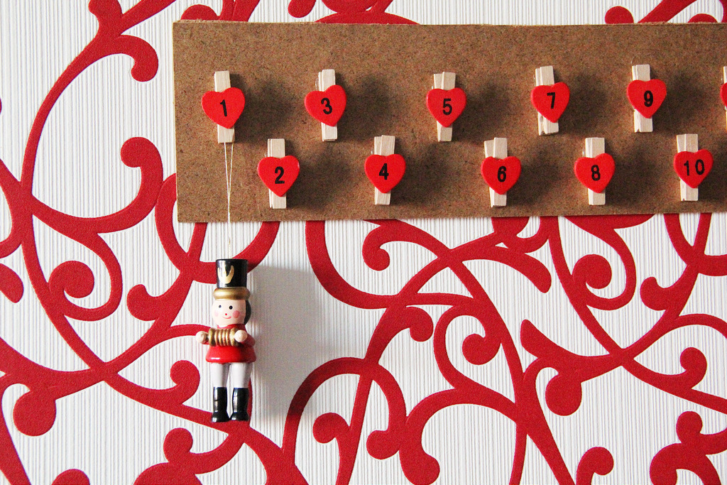 calendario dell’avvento è ben fissato sulla colonna in cucina, saldo per