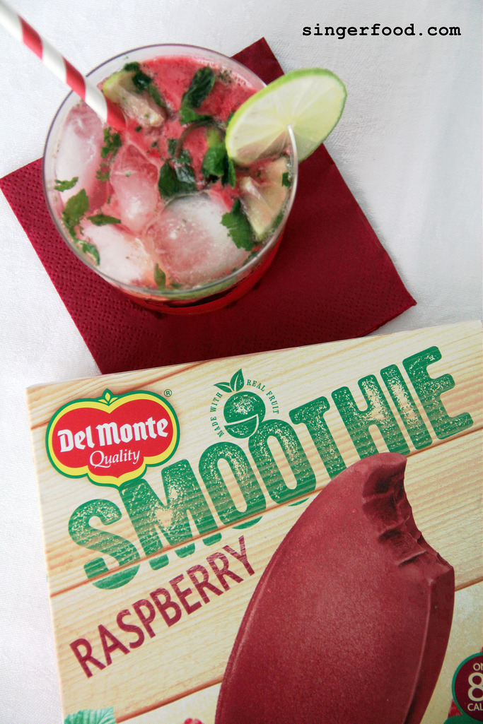 Per prima cosa bibite fresche e dissetanti, tanta frutta e piatti da preparare in pochi minuti, senza accendere il forno o i fornelli per troppo tempo. Vien da sé che sono inevitabili le lunghe soste davanti al banco frigo e surgelati durante la spesa al Supermercato, sono le corsie più frequentate per far fronte a queste esigenze ed è proprio lì che è possibile trovare una delle novità dell'Estate 2014 che ci ha convinto: lo Smoothie di Del Monte. E' possibile acquistarlo nelle varianti di Mango e Lampone, una consistenza morbida che accompagna il gusto deciso della frutta, poche calorie e grande versatilità. Abbiamo pensato di utilizzare lo Smoothie al Lampone per un cocktail analcolico da sorseggiare in compagnia o mentre si finge di essere al mare o in piscina, seduti sul divano di casa ("terapia dell'inganno", appunto).